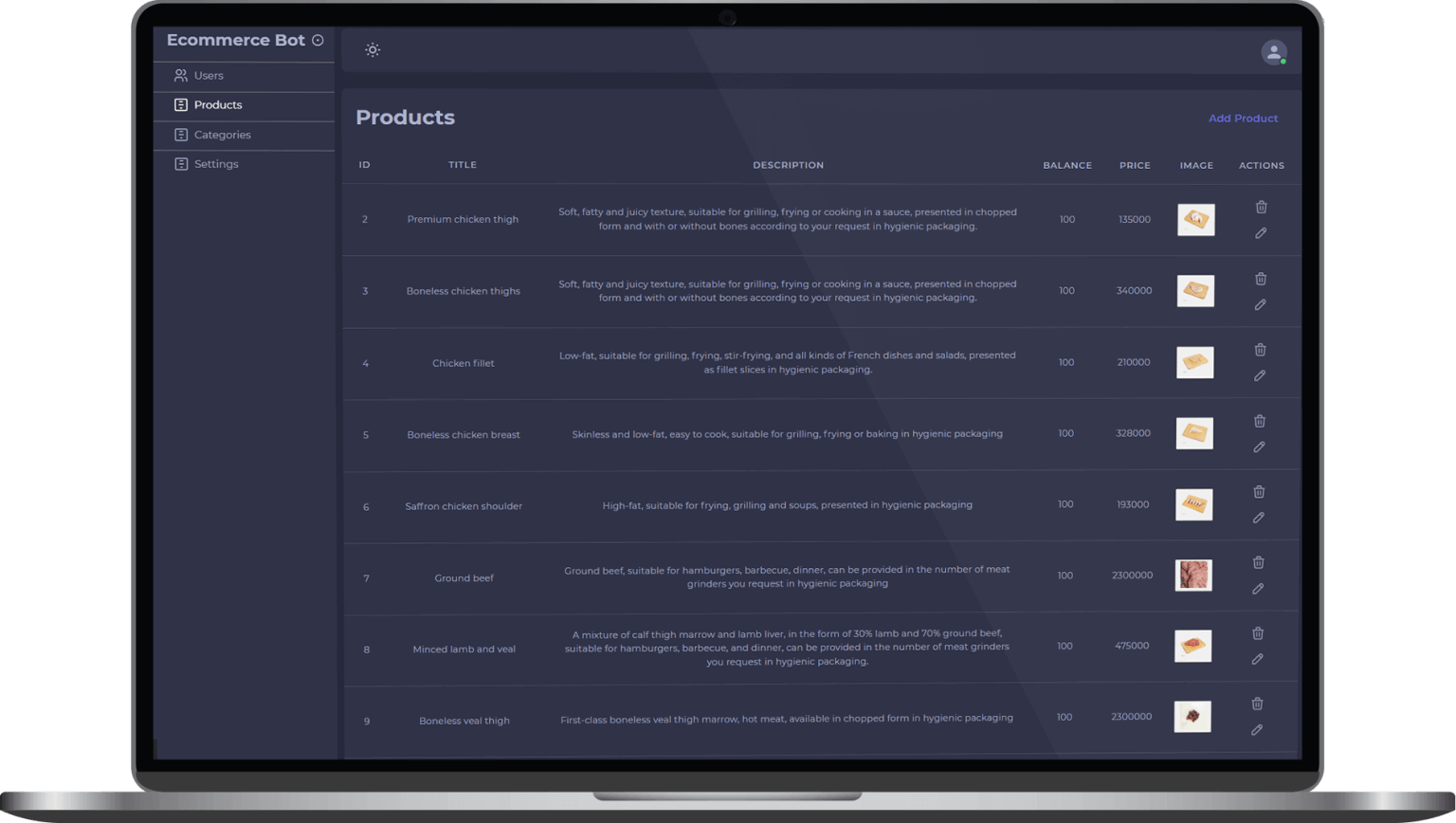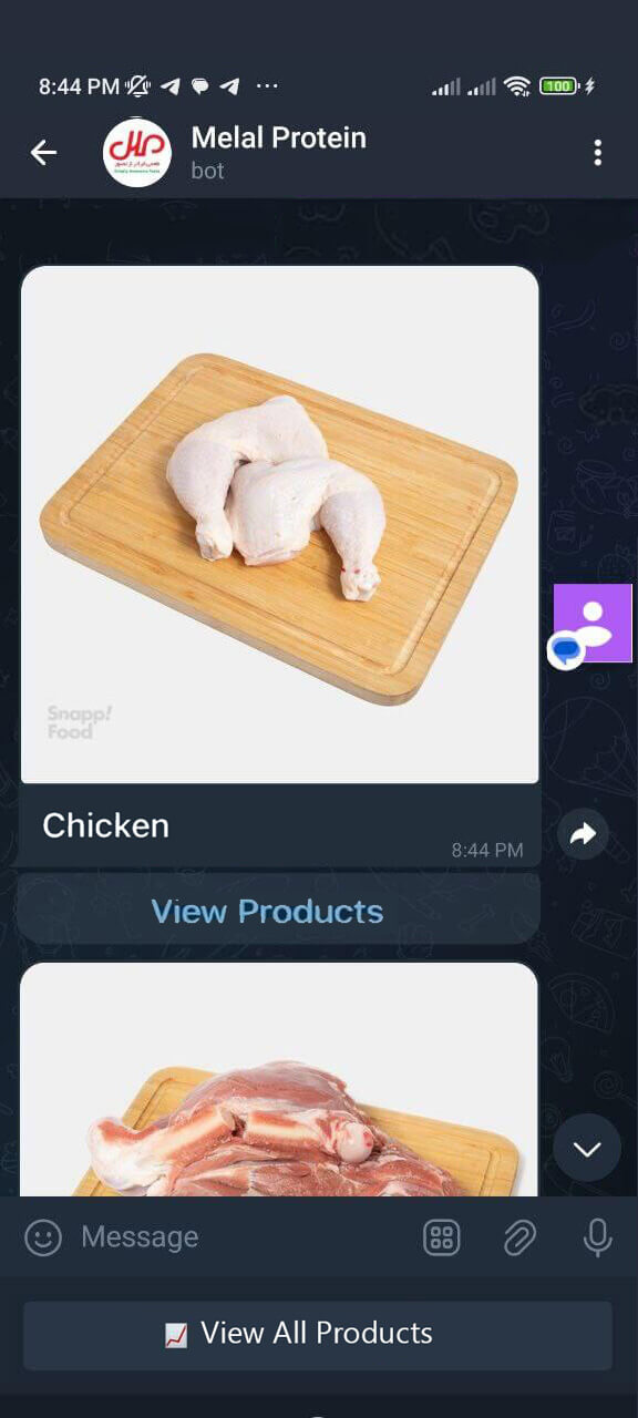 As an example, we have developed a Telegram bot for selling food and protein products. This bot allows product showcasing, order placement, payment management, and direct interaction with customers.